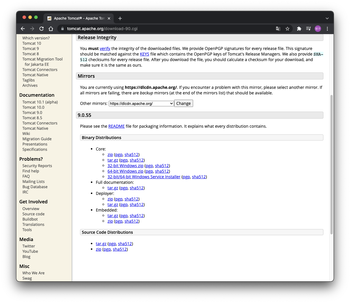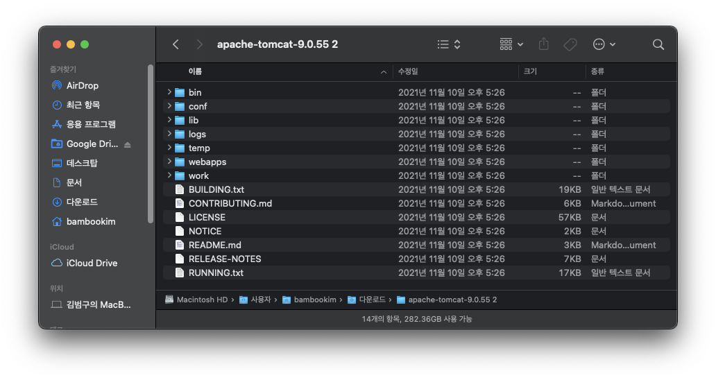 위 링크로 들어가, 알맞은 버전의 톰캣을 다운받는다.