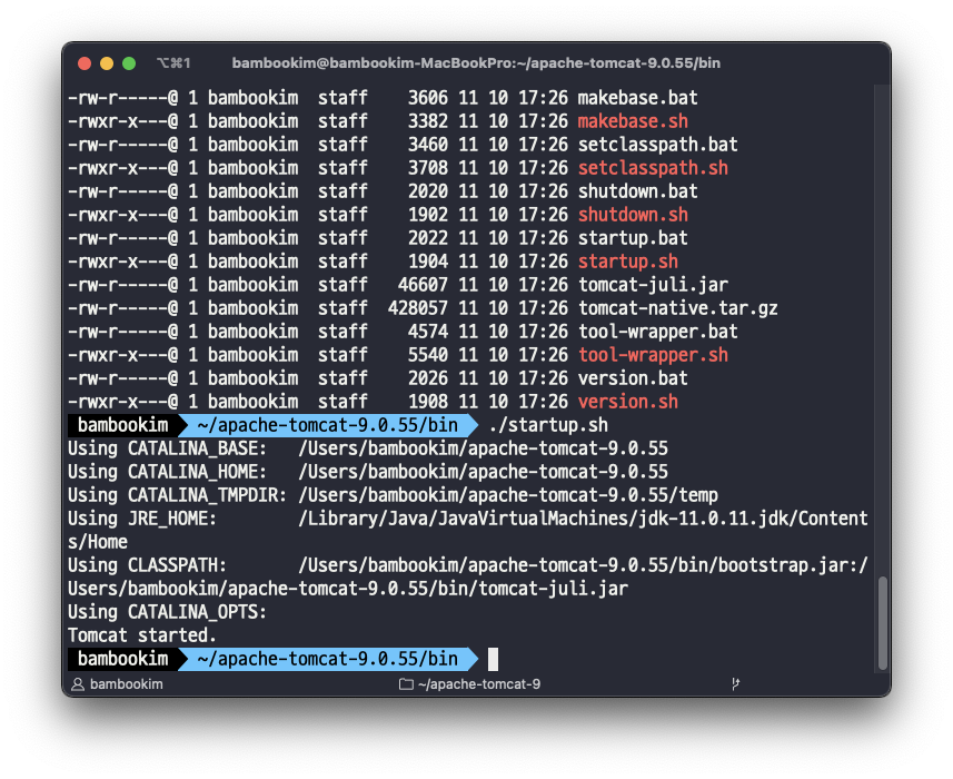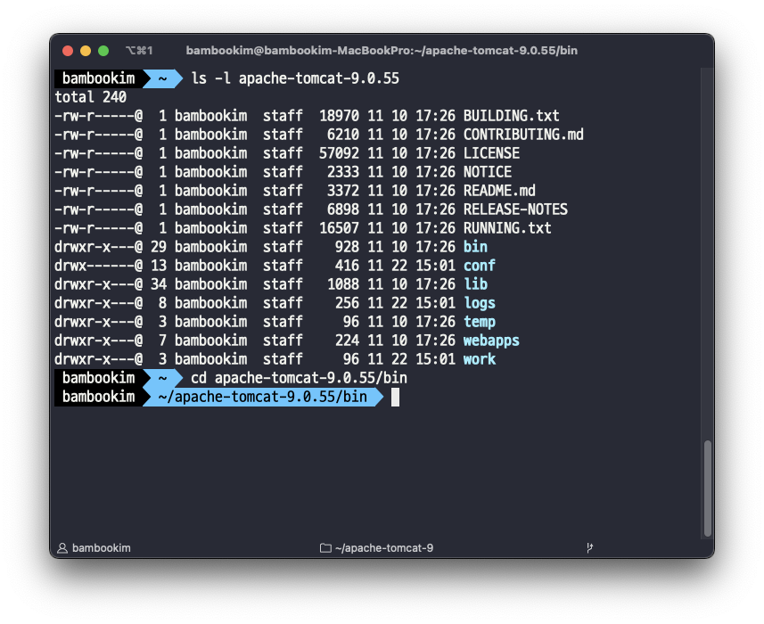 터미널을 열고 ~/{아파치 톰캣 폴더}/bin 디렉토리로 이동한다.