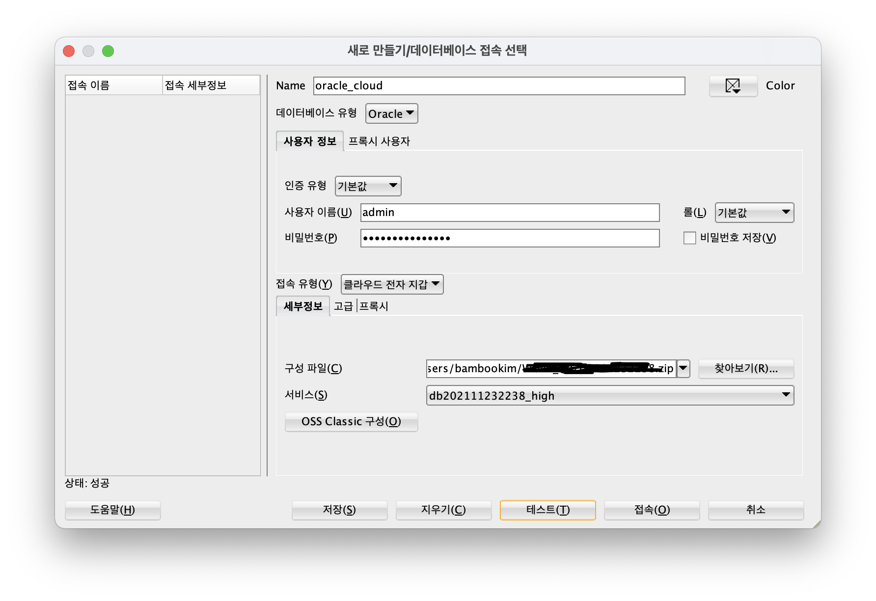 오라클 클라우드 데이터베이스는 보통의 URL이 아닌 Wallet을 이용해 접속하기 때문에 조금 다르다.