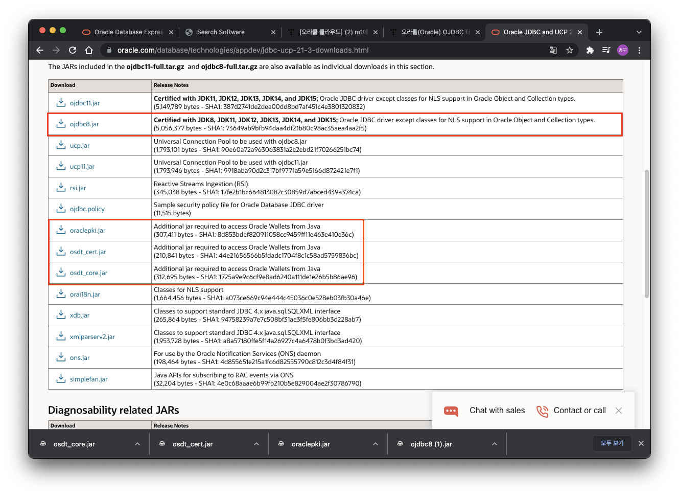 osdt_core.jar, osdt_cert.jar, oraclepki.jar 파일까지 추가로 받아야 한다!